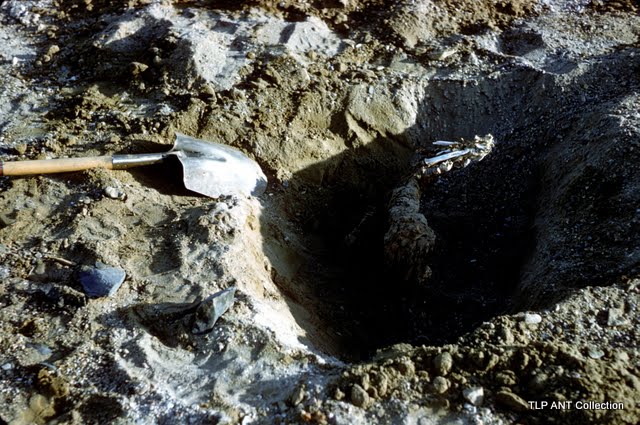 Station 85. Seal carcass partially buried in ground silt and sand. See black and white photograph 1619. This is seal carcass #33. C-14 sample #4.