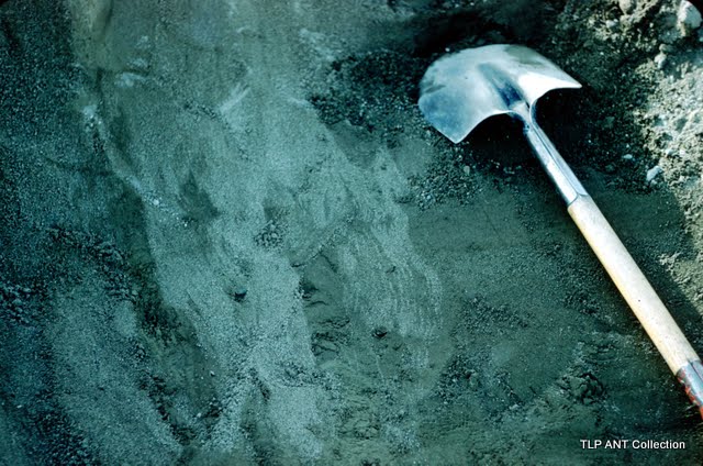 Close-up of small detail of sand wedge in diversion channel. Same as black and white 1663.