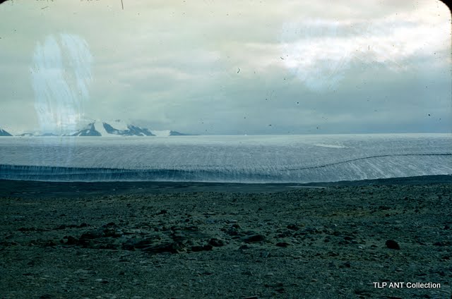 Station 196. View of Wilson Piedmont Glacier with black band or shear band on side coming around to be little shear moraine in front. 1/60 f7.