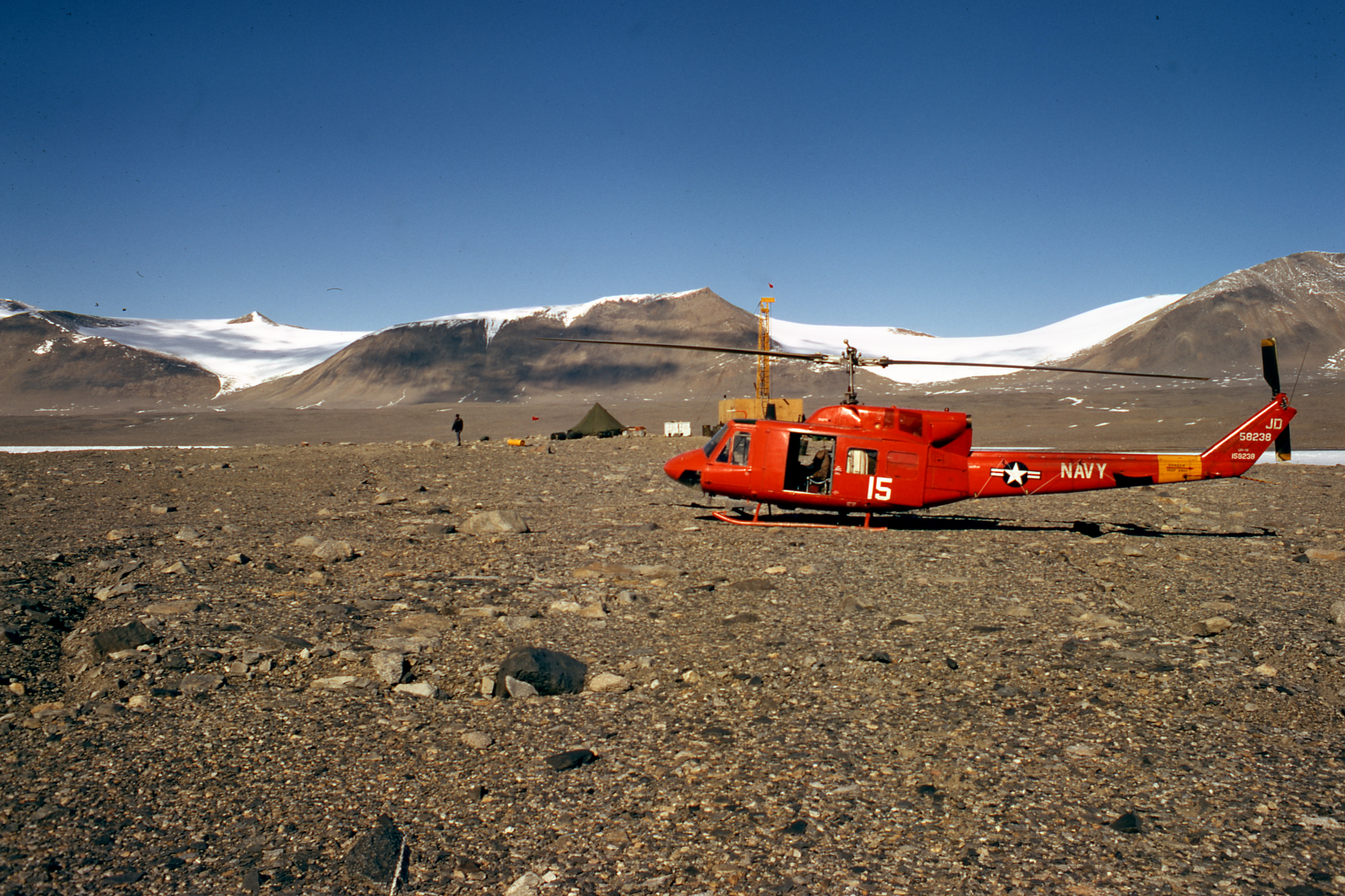Helicopter landing at DVDP Site Near Lake Fryxell