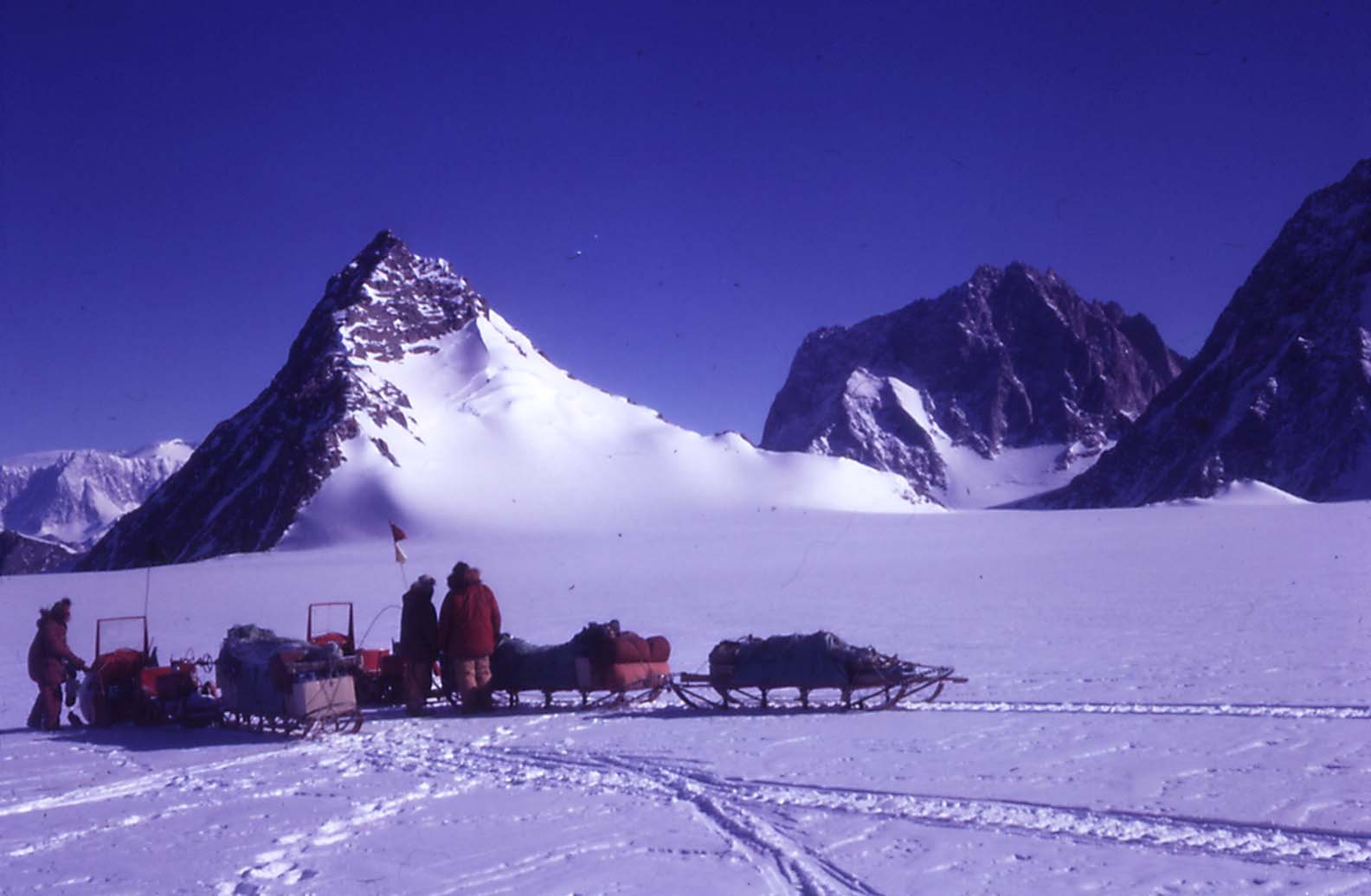 Mountain peaks and sleds