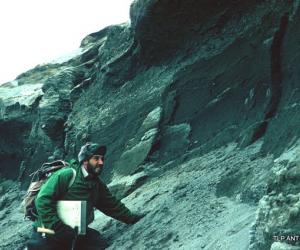 The seismic party Mt. Erebus and a blast going up